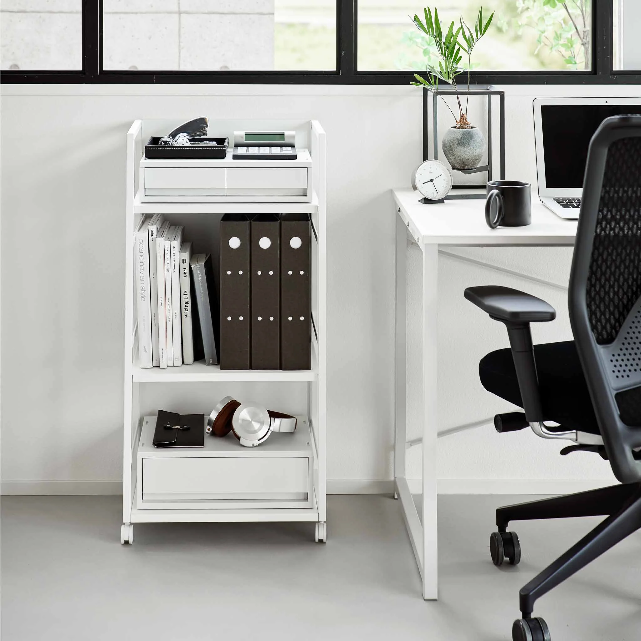 This wagon keeps household items organized and out of sight. The casters ensure mobility, while the closed backside hides stored items. Featuring three shelves, including two adjustable ones, it offers versatile storage solutions.